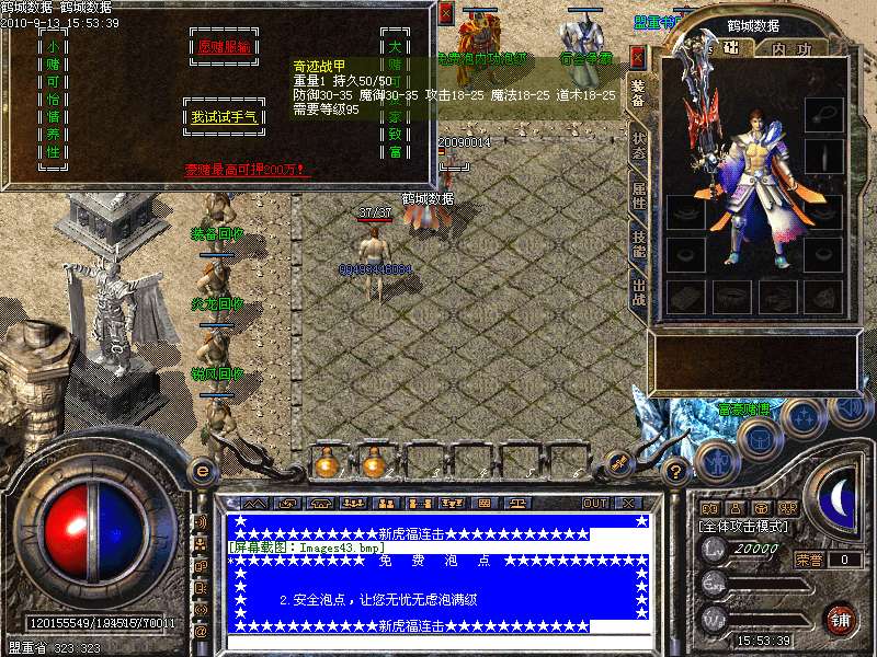 *★★★★★★★★★★ 人 物 系 统 ★★★★★★★★★★★★ 1. 人物等级200级封顶 2.内功等级255级封顶 ★★ 3. 内功技能等级提升,点击土城内功提升NPC,不必自已修炼 ★★★★★★★★★★★★新虎福连击★★★★★★★★★★★