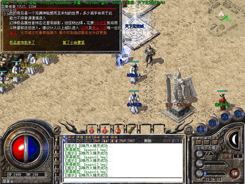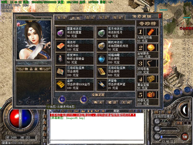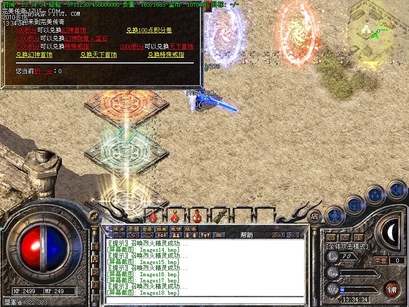 【积分兑换】 打怪获得的积分可以在NPC处兑换高等级装备.