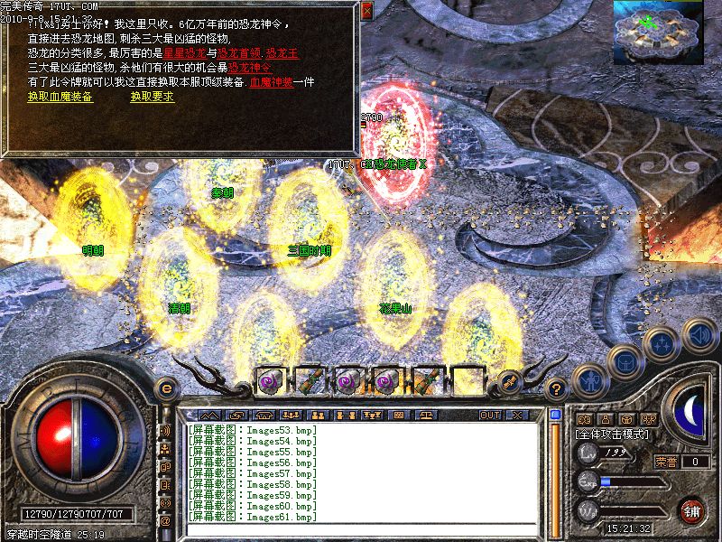 恐龙时代★:此地图是扣元宝地图,200万/秒,里面有个三大怪叫星星恐龙,恐龙首领,恐龙王.杀死此三怪必暴(恐龙神令)有了此令可以享受超低价格换取本服顶级装备一件,多去此地图,多给GM财路