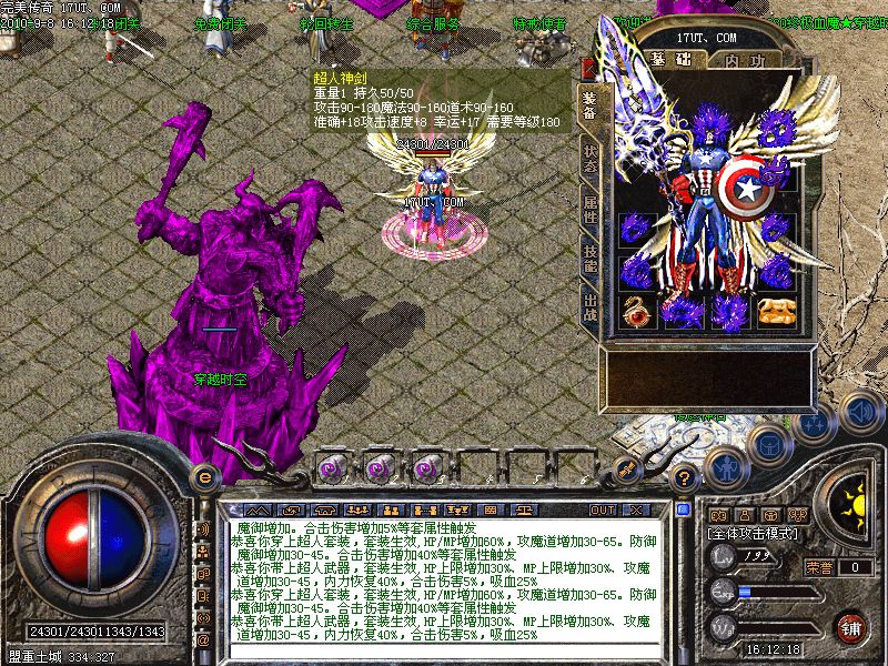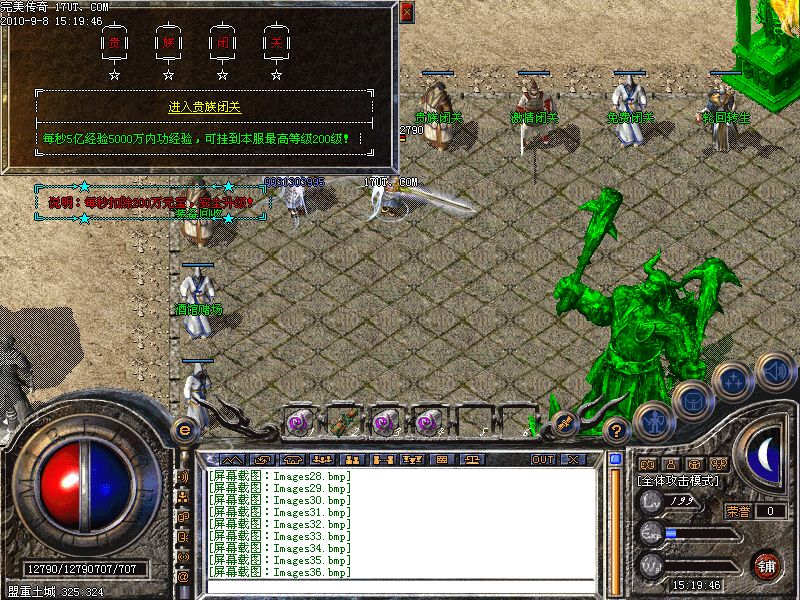 激情殿堂:每秒5000万经验250万内功经验!(可PK区域,可挂到本服顶级200级,内功255级)