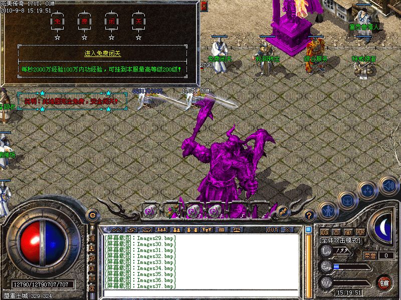 ③.统领攻城:每天下午5点,各城市安全区刷1只滴血统领,杀死后一定机率爆终极装备!