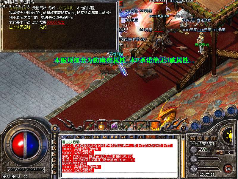 ━═☆天下第一:每天下午3点,土城左上角进入,最后一个离开获得"天下第一剑"和500万元宝━═☆