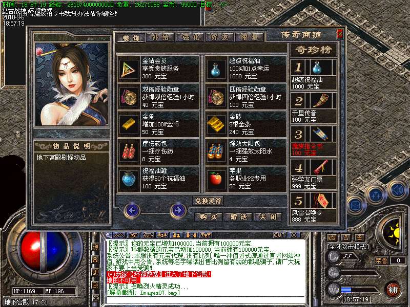 ★ 新增地图 未知圣殿.此地图专爆终极装备和武器.泡点地图:元宝泡点练级