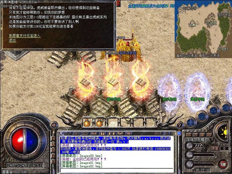 本服务器所有地图都会暴.锐风.荣耀.倚天风暴设置虎威系列只要你自己努力了不花钱一样是终极!!