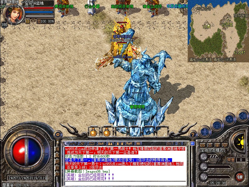 本服务器2天后晚8.00准时拿沙.沙城主奖励1亿元宝以及[断翼残月]1把.赶快去争取吧.属性可不是一般的好哈哈