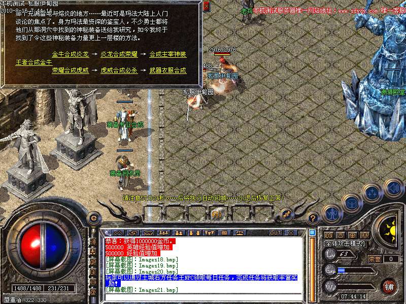 本服务器新区首次拿沙奖励城主500000元宝!沙奖励在22点5分至22点15分找城堡守卫领取!