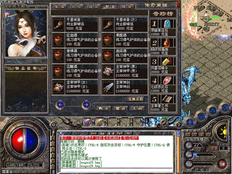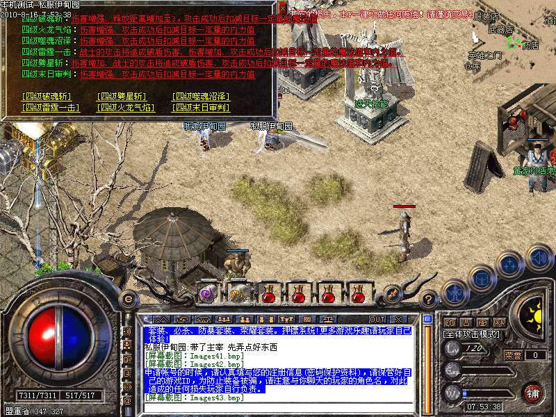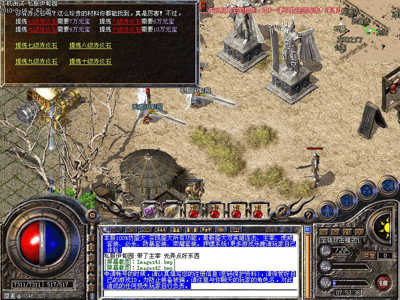 100%仿盛大,实现盛大所有功能,最新盛大双英雄连击、主宰、虎威套装、必杀、辉煌、荣耀套装。押镖系统!更多游戏乐趣请玩家自己体验!
