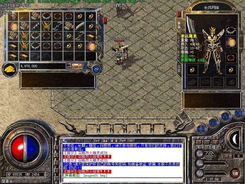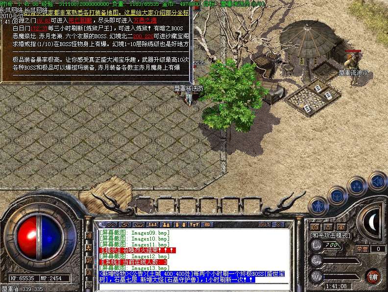 三.【特色活动】封魔谷皇宫内(17,22)与土城药店(356,336)每4小时刷一个终极BOSS〖守护神〗,此怪丧失人性,杀人不眨眼,极其凶险,望各位玩家注意!不过爆率绝对OK!!!