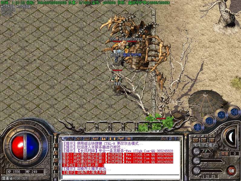 <新增怪物>[土城 400:400处]每两个小时刷一个终极BOSS[盛世宝树],石墓七层 新增大怪[石墓守护兽],1小时刷新一次!!