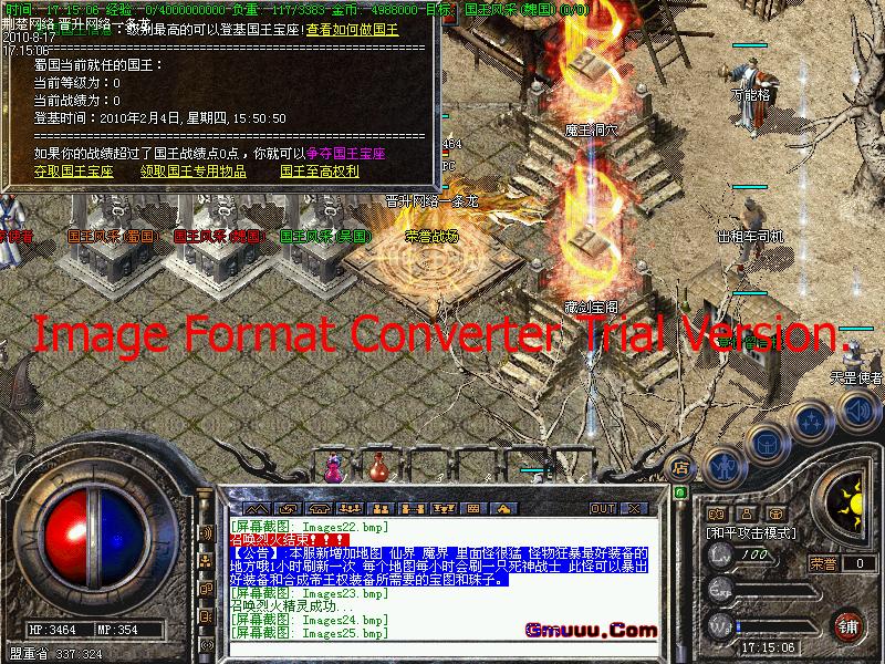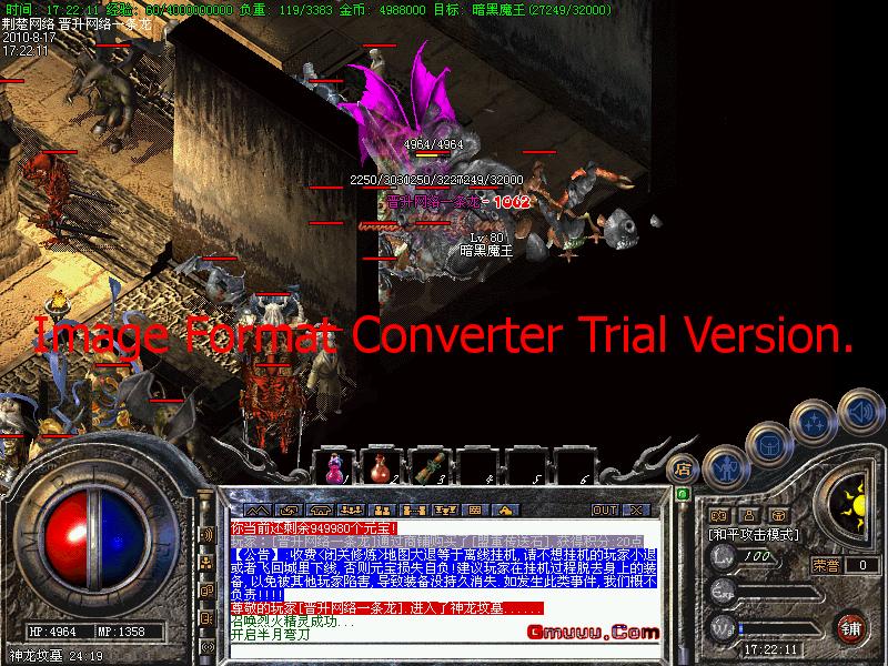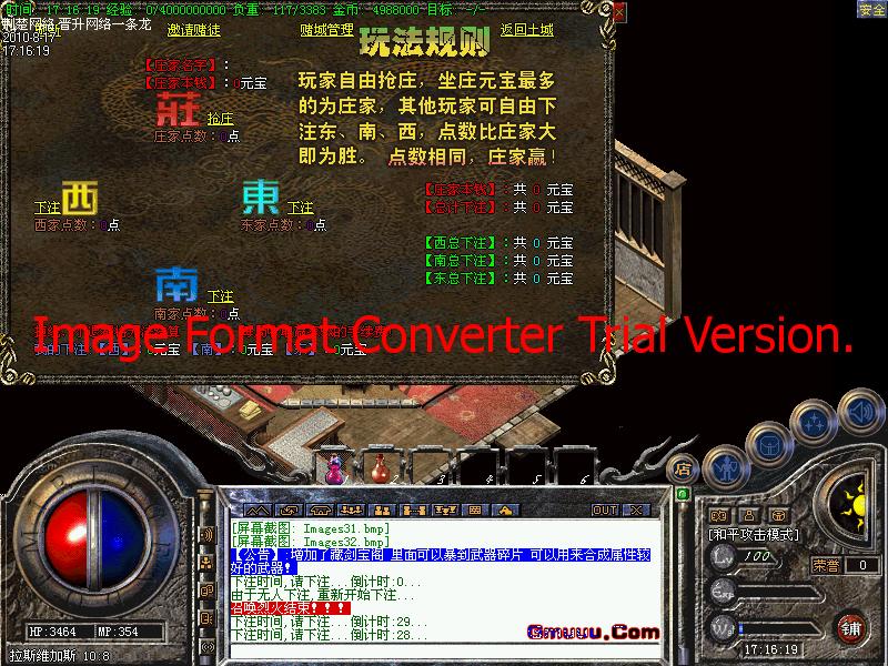 晋升网络2010巨献—1.85三国鼎立灭神元素内挂版,版本采用传奇版本中最新SKY游戏引擎,本服设计绝对人性化,90%的设计参考非RMB玩家的角度去设计.只要您肯花时间,一定可以玩懂,装备丰富多彩,层出不穷,地图更多,特色具全,版本完全考虑到玩家下载装备的不便,完全采用盛大地图,怪物,只需要下载2M的登陆器就可体验全新的传奇,是您长期开区的不二选择.1.85三国鼎立灭神元素内挂版经开区测试,人气及其火爆销售情况剧佳 ,适合客户长期开区. 要做私服一条龙请咨询客服.建议客户传奇一条龙客户1-3天一新区.更多传奇私服版本请点击.
