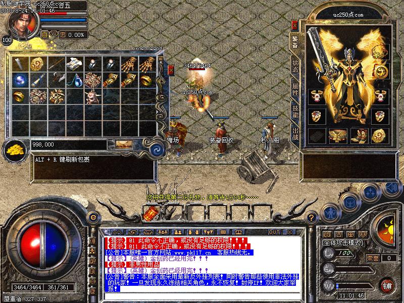 增加了首饰合成回收功能,给普通玩家一个公平的环境.经过数日的测试完成游戏的整体协调性;升级速度 怪物爆率 装备属性 PK职业平衡性做了重大调整(本服决不是让普通玩家没办法生存