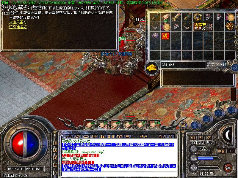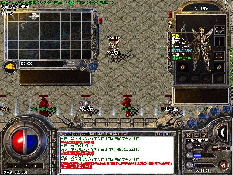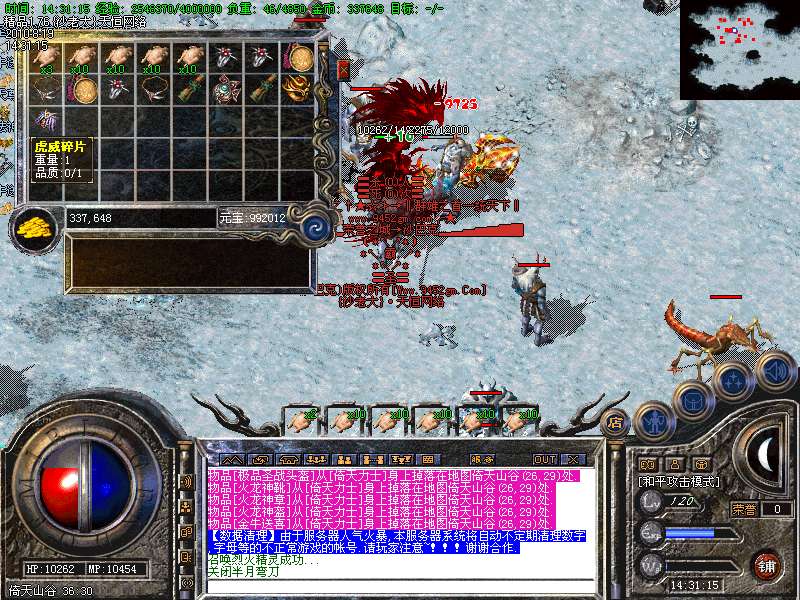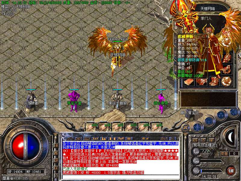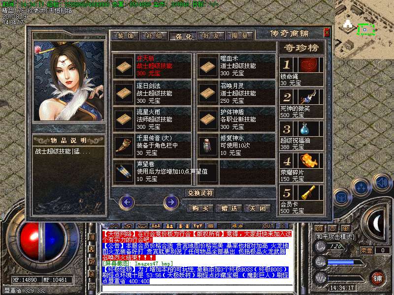 【神的恩赐系统】玩家可以在元宝商店使用获得<神的恩赐>,短暂的时间内激发自身潜能力量.增加人物死亡提示地图.坐标.方便丢了装备的快速找到该地点.
