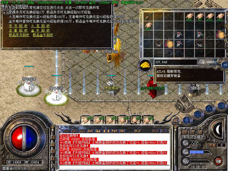【装备回收】回收方面分两种!元宝回收!经验回收!土330.340查看!