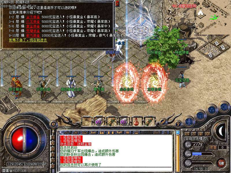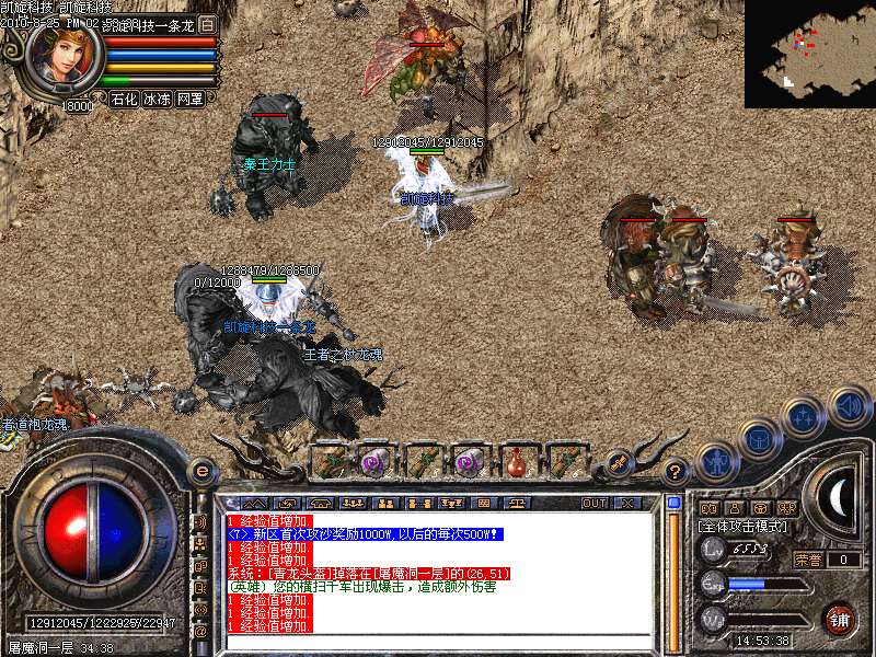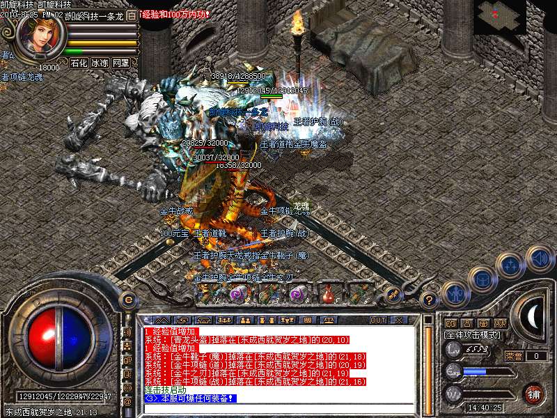 激情殿堂: 打初中级装备,另外进入本地图可和免费闭关一样自动获得100万经验和内功经验!
