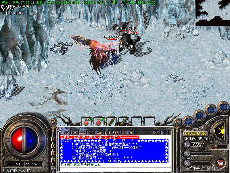 每隔半小时休息地图、比奇皇宫、封魔皇宫都会刷财宝猪、大BOSS爆元宝和好东东