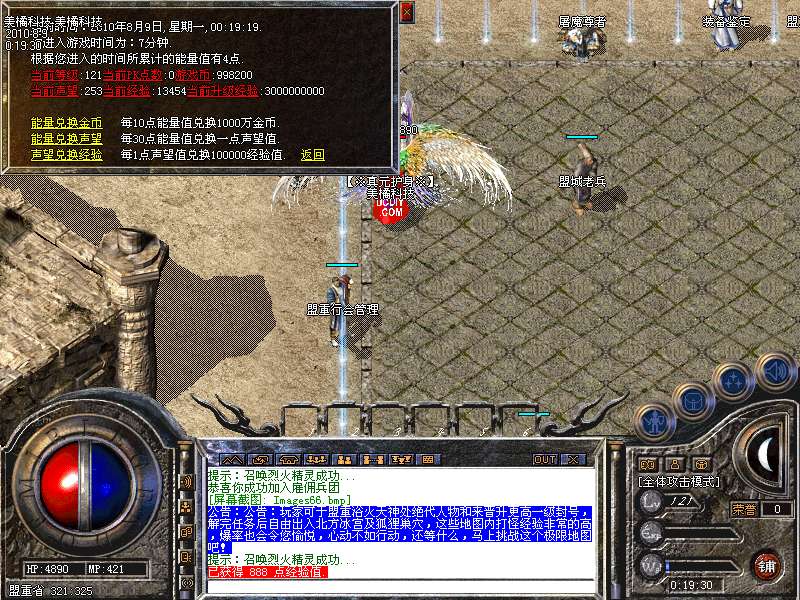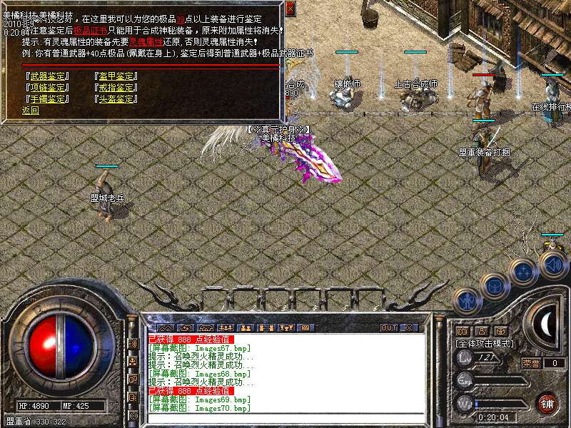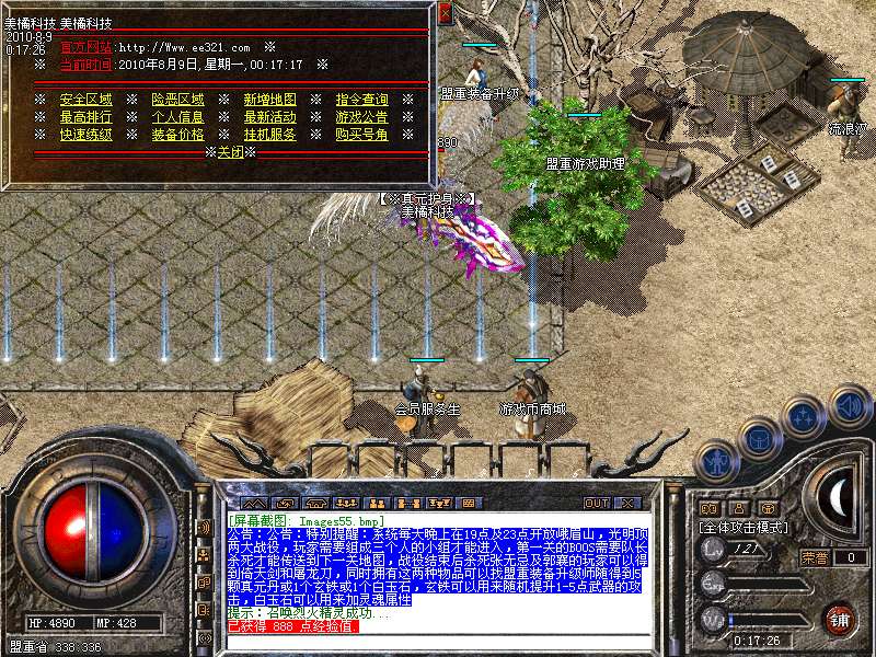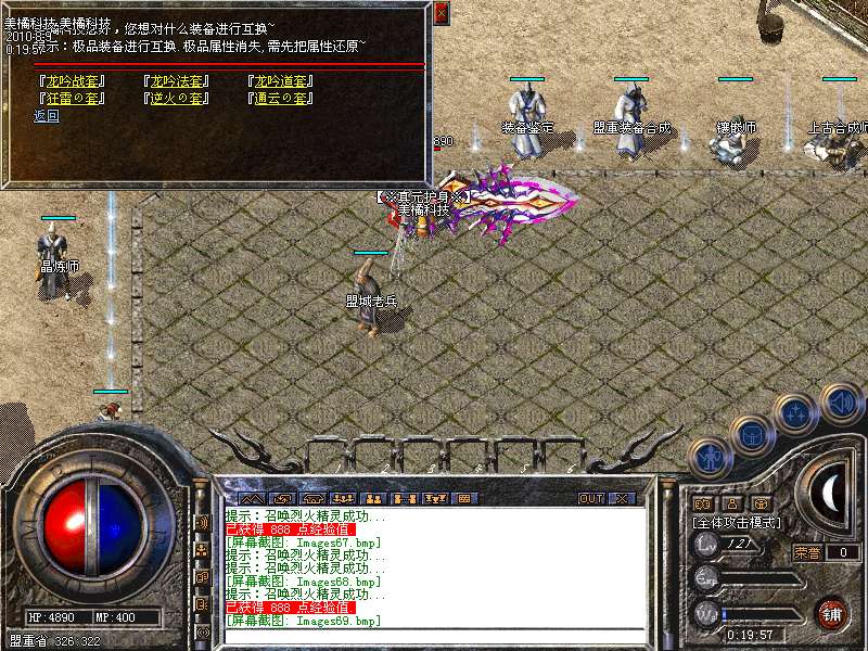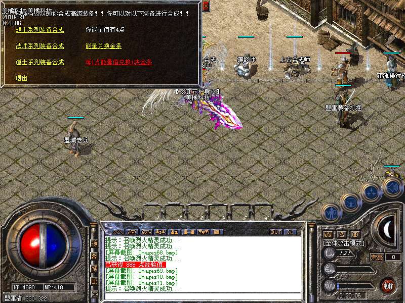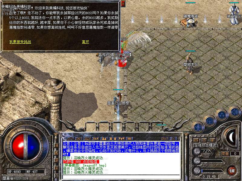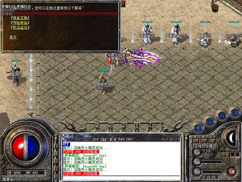 功能:高级装备攻略→上古合成(比奇城)→上古镶嵌(白日门)→2转装备(终极炼狱最后一层),每天中午12点30分举行年兽BOOS攻城,有几率爆出新技能