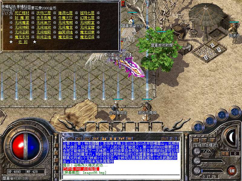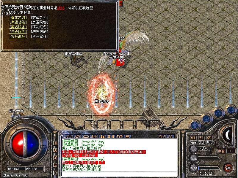 功能:玩家可于盟重浴火天神处绝代人物和来晋升更高一级封号,解完任务后自由出入北方冰宫及狐狸巢穴,这些地图内打怪经验非常的高,爆率也会令您愉悦,心动不如行动,还等什么,马上挑战这个极限地图吧!