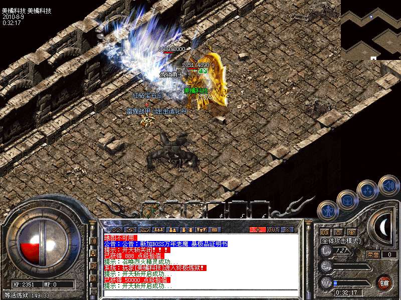 功能:特别提醒:系统每天晚上在19点及23点开放峨眉山,光明顶两大战役,玩家需要组成三个人的小组才能进入,第一关的BOOS需要队长杀死才能传送到下一关地图,战役结束后杀死张无忌及郭襄的玩家可以得到倚天剑和屠龙刀,同时拥有这两种物品可以找盟重装备升级师随得到5颗真元丹或1个玄铁或1个白玉石,玄铁可以用来随机提升1-5点武器的攻击,白玉石可以用来加灵魂属性