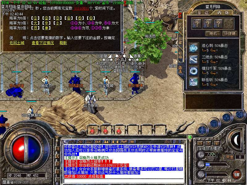 7.新增加:荣誉大战,每天晚上8点准时举行,杀一个人奖励50元宝!