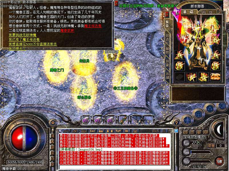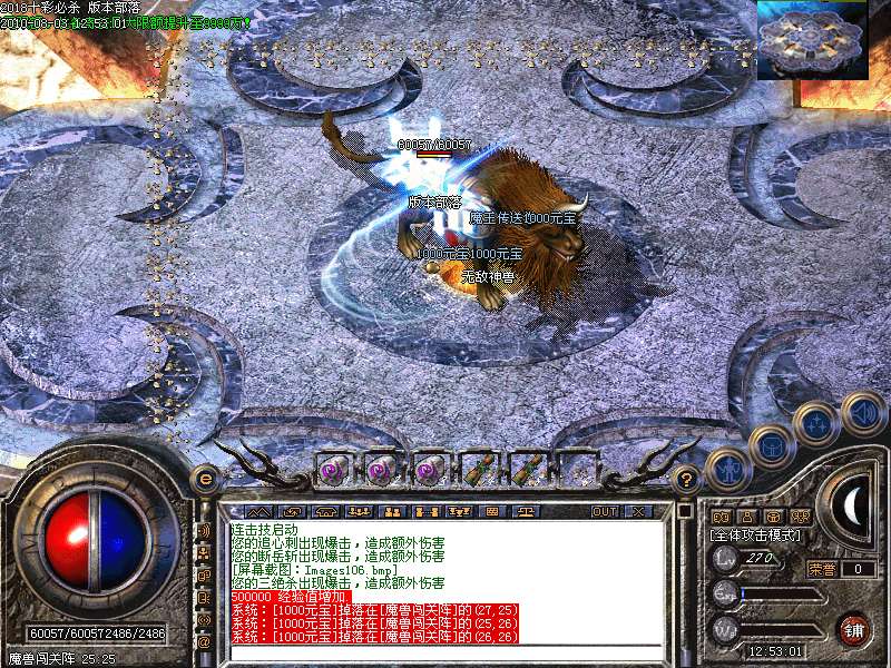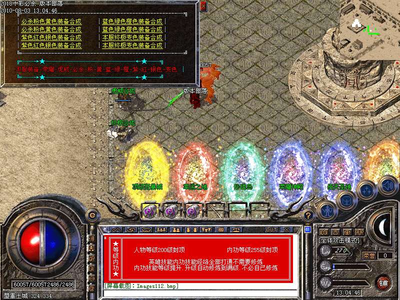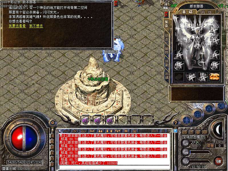 激情殿堂:每秒1200万经验200万内功经验!(可PK区域,可挂到本服顶级200级,内功255级)
