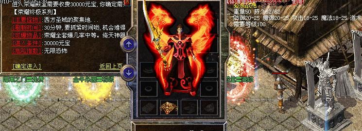 团队挑战火龙神任务,火龙神必爆一颗龙魂,凑齐7颗龙魂即可兑换高级武器或超高经验及超高内功