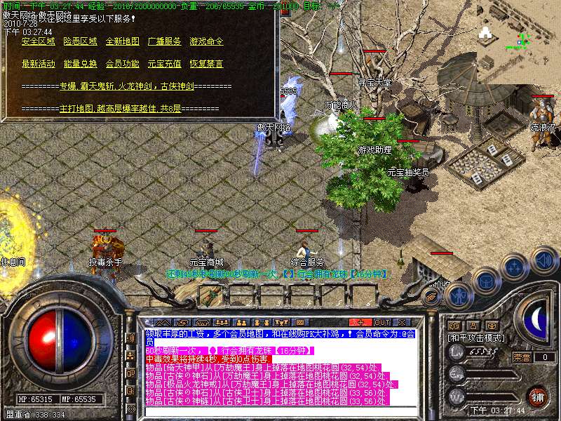特别提示:在每天的下午3点,6点,晚上10点,12点会开放武器专爆地图!可爆古侠武器和元宝!