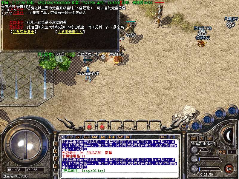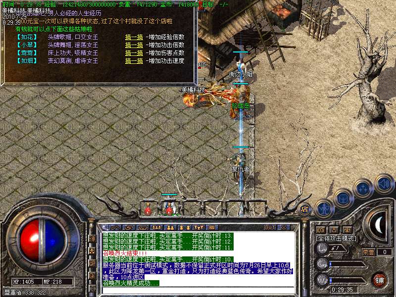 h.烟花秘穴:每30分钟刷新一只暗之赤月恶魔,一小时一只烟花教主.需要放九珠连环炮进入