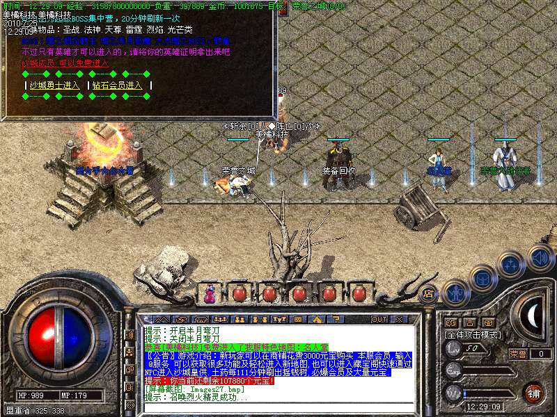 名人堂: 我服最特色的一个地图,四大天王不定时刷新,杀死其中任何一个可获得1.5亿的经验.