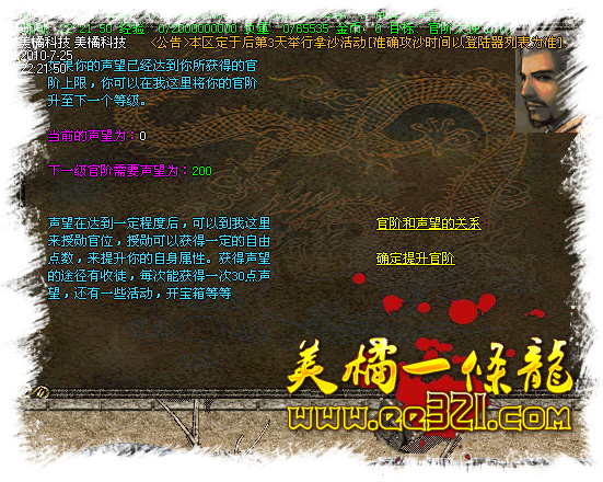[官阶系统]:玩家可以用声望进行官阶提升.提升后将有属性增加等多功能封号系统!!!