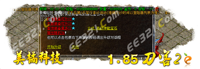 ☆装备升级☆:如果你对现在的装备属性太低感觉不舒服,可以通过人物的装备栏旁边的“炼”来升级装备。升级装备的时候需要装备升级石头,商铺有销售3种类型的升级宝石⒈随机升级宝石(属性是随机加2点)。衣服和武器可以升到15星,首饰只可以升级到11星。如果想提高砸星的成功几率可以功过商铺的神能神石和超级神能神石来提高几率。