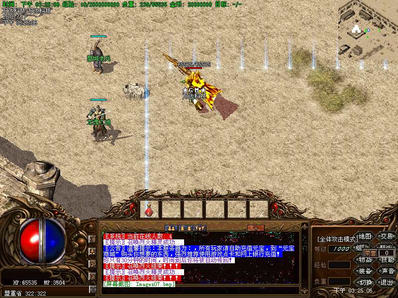 温馨提示:本服务器强大的会员功能:上线2倍经验,随身买药,每天领取工资1000元宝和一千万金币,会员专用练级地图,专用打宝地图狂爆本服所有装备,免费洗红,在线祝福等.会员随身命令:@会员服务