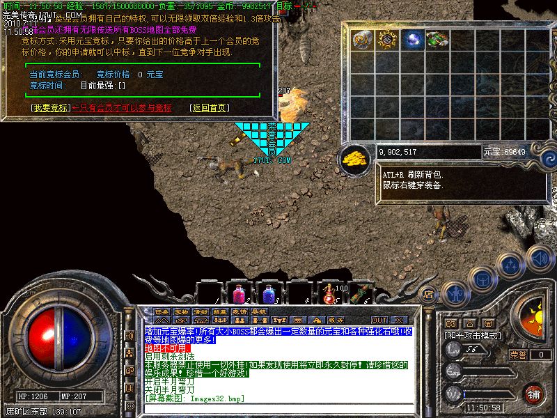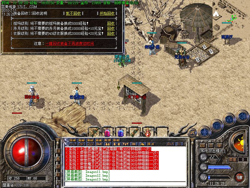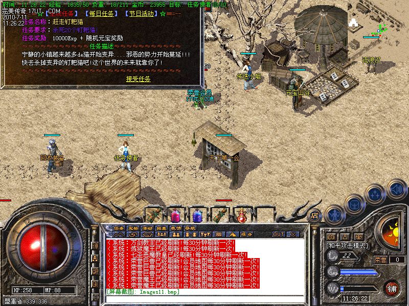 [元宝爆率] 所有大小BOSS都会爆出一定数量的元宝哦!收费等地图爆的更多!