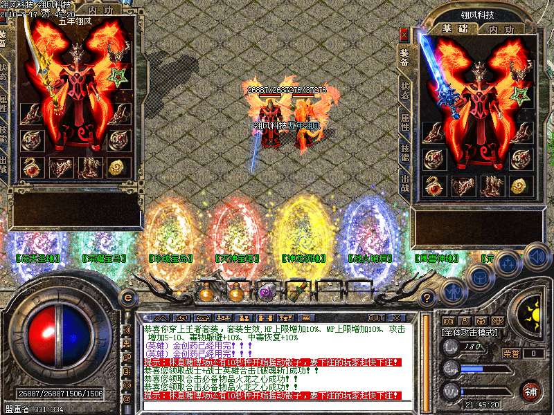 新增地图:豪情荒岛(六层),辉煌城堡(五层),顶级狂暴城,虎威荒漠,必杀魔坛