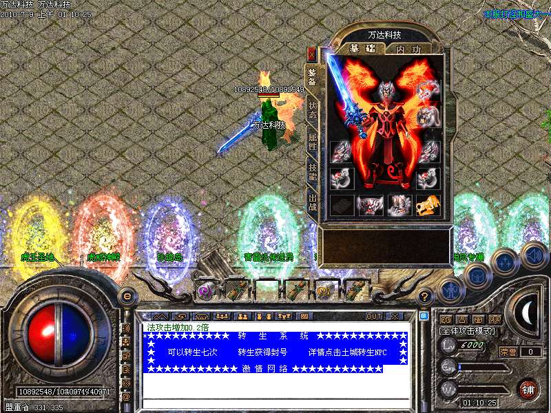 激情殿堂:每秒1200万经验200万内功经验!(可PK区域,可挂到本服顶级180级,内功200级)