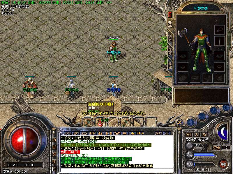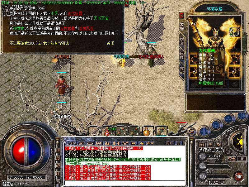 [冲级奖励] 玩家到达45级就可以100元宝奖励!也可以击杀[万年树妖]和[古代龙猪王]获得