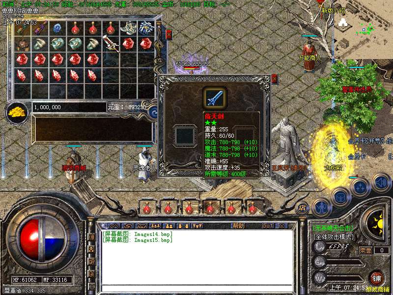 [游戏系统]:不卖装备,无管理,所有装备一切靠打.绝对人人平等!!!