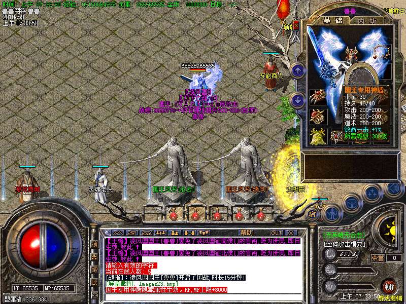 [国战系统]:每两小时轮流开放1次,每次半小时,每30秒能获得大量经验和荣誉,杀死敌国玩