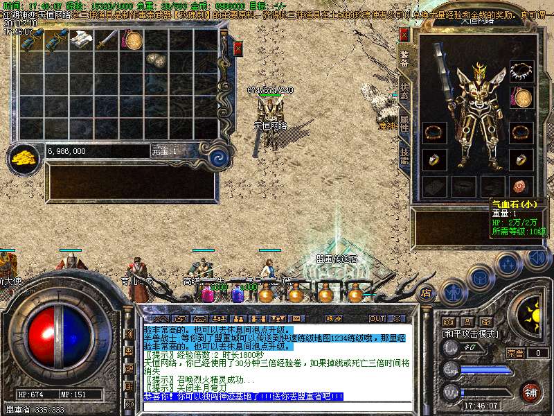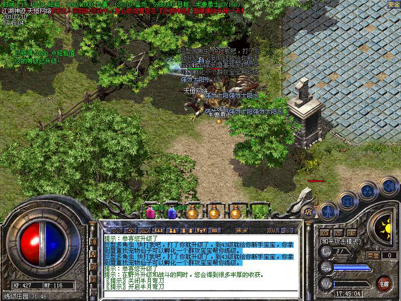 记得使用三倍经验卷并召唤宠物,群秒宠物可以帮你快速练级。五、六层需要元宝才能进入,当然经验奖励也同样相当的丰富,让你