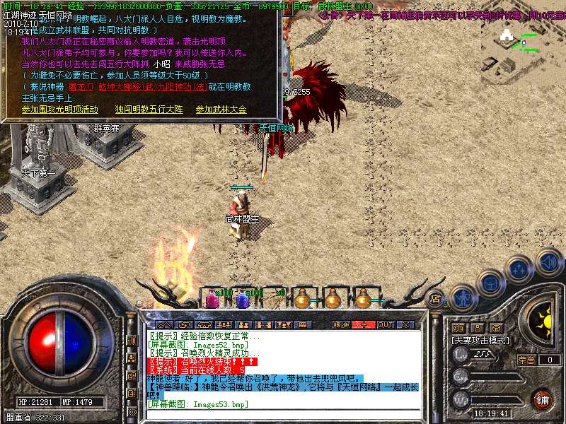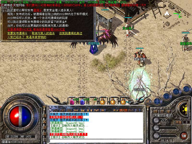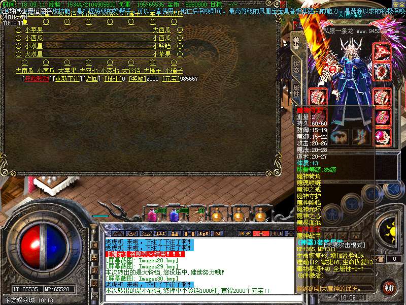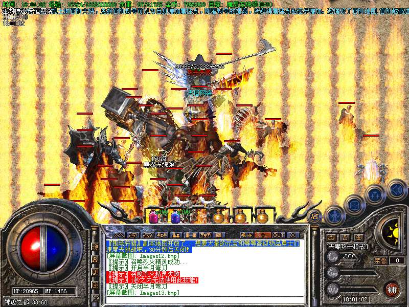 [上古结阵]:玩家在游戏打宝中.可将装备进行回收.每达回收一定程度.系统将自动怪物攻城!