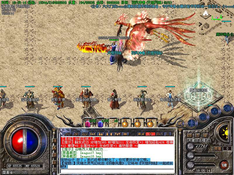 [宠物系统]:玩家可用灵宠神石进行喂养圣兽.此宠物带群攻.绝对是练级的好帮手!!!