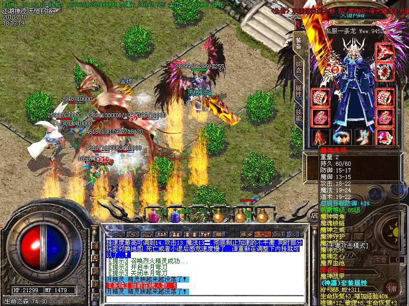新增装备: 天使套装 魔神套装 双龍套装 六大门派神器