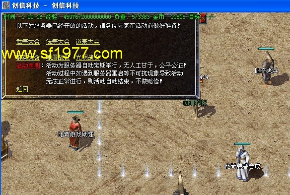 公告:高级装备攻略→上古合成(比奇城)→上古镶嵌(白日门)→2转装备(终极炼狱最后一层),每天中午12点30分举行年兽BOOS攻城,有几率爆出新技能