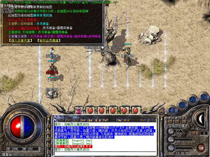 [版本特色01]特别地图:王者天堂每天15点.19点.0点开放.此图任何怪物都可以暴出赤月类装备和雷霆.战神装备.王者魔王可暴出终极武器!