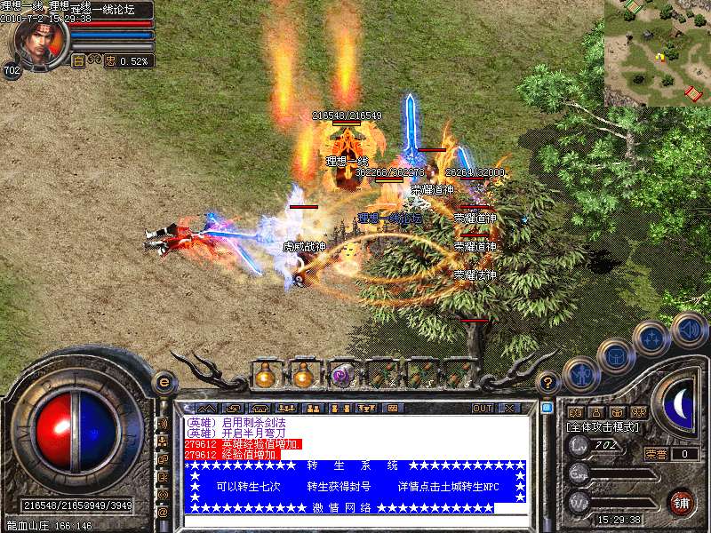 激情殿堂:每秒1200万经验200万内功经验!(可PK区域,可挂到本服顶级180级,内功200级)