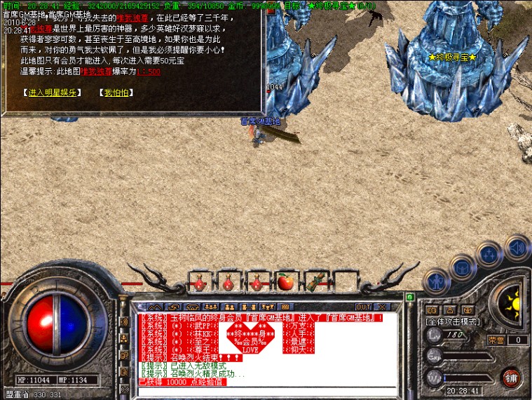 友情提示:一个好的游戏环境是靠大家维持的,破坏游戏,刷祝福喷人,盗号,骗装备等等一些小人手段,本GM一次面子不给,发现一次封整个网吧IP段请大家注意自己素质!