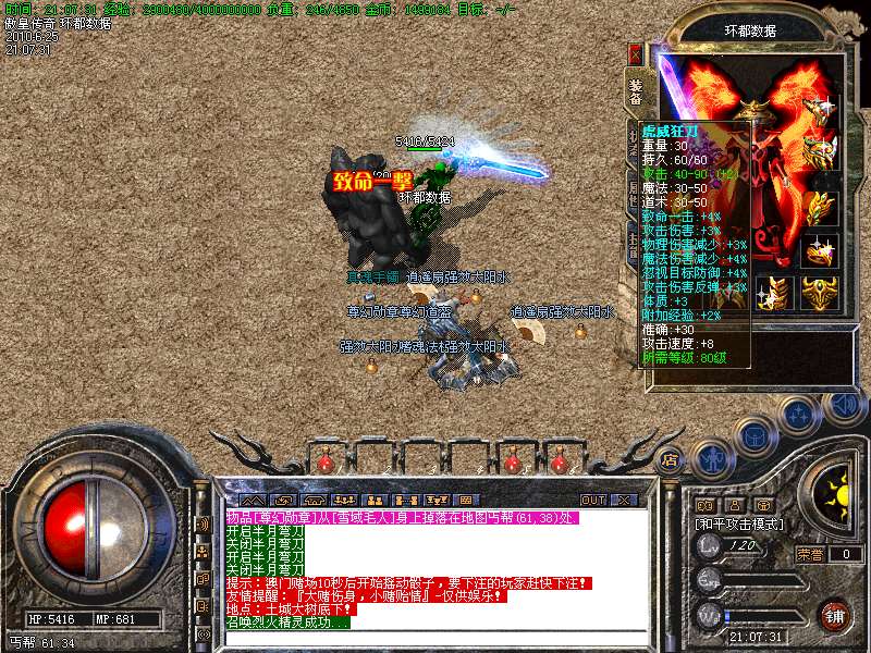【地图介绍】:增加新BOSS,暗之烟花教主60分钟一只,刷新地图:荣誉之都 烟花秘穴,烟花秘穴需要放九株连环炮随机进入!