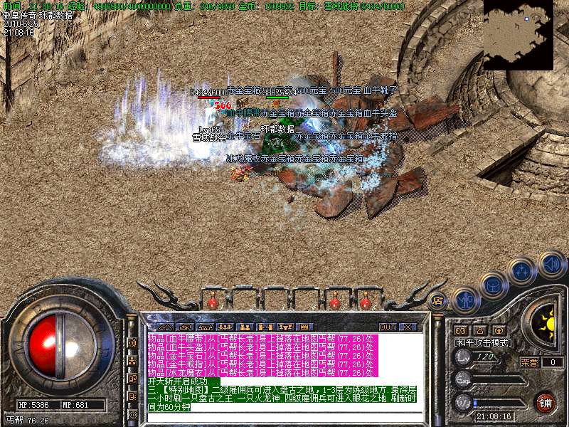 【特色活动】封魔谷皇宫内和土药附近每2小时刷一个老魔,系统每2小时还会在沃玛大厅举行一次大型送宝,可以暴出高级装备