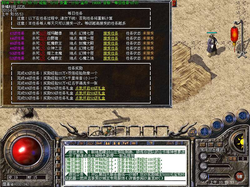 3—— 本服新设立摆摊系统,在各杂货铺用金币就可以获得摆摊卷哦。以方便玩家出售各物品以及购买装备等。