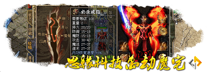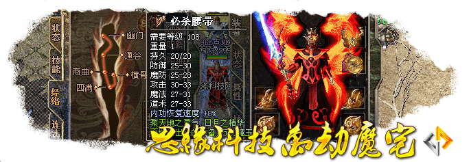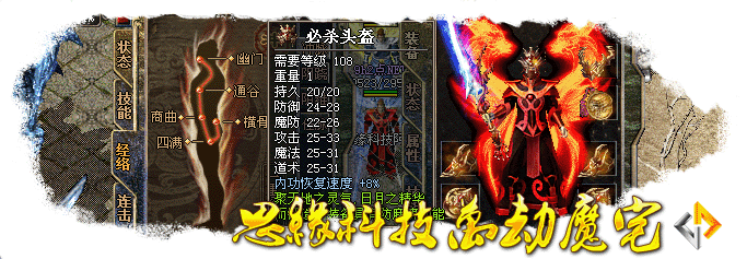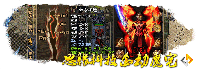 游戏介绍①: 人物.英雄上线即刻打通全部经络, 自动学会全部连击招式,内功送30级,无须大家再花钱学习.