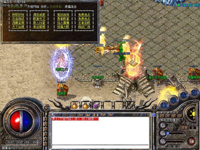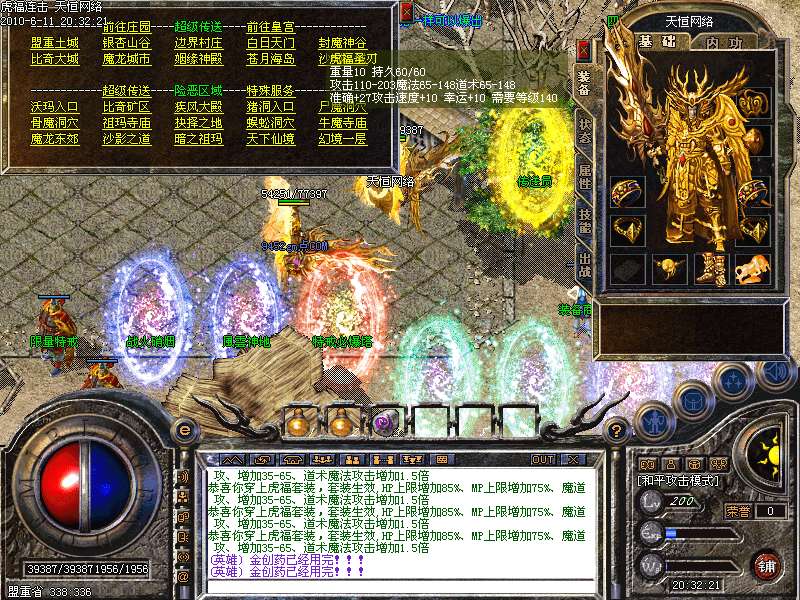 天恒网络;2010年暑假巨献—神虎双连击版-虎福争霸,加入沙巴克行会押镖系统,四级技能,必杀斗笠,必杀面巾,强化神兽 盛大副将 地图,装备采用全新盛大装备,高额元宝升级奖励, 不断刺激玩家练级激情,此版本是骨灰级玩家首选..